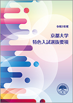 新型コロナウイルス感染症対策による大学入学共通テストの実施期日の変更に伴い、各学部・学科の選抜日程を一部変更しました。変更内容は、以下でご確認ください。令和3年度特色入試の出願にあたっては、必ず「令和3年度京都大学特色入試学生募集要項」をご確認ください。(2020年8月6日)