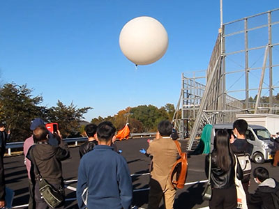 2020年は、定員を例年の半数程度としましたが、定員を大きく上回る応募があり、午前と午後の部を合わせて78名の参加がありました。当日は、2班に分かれて、教員および観測所スタッフによるMUレーダーおよび光・電波・音波を用いた大気観測装置の見学ツアーを行いました。最後に、気球を用いた大気計測手法(ラジオゾンデ)を説明し、来場者と一緒に気球を放球する観測実演を実施しました。