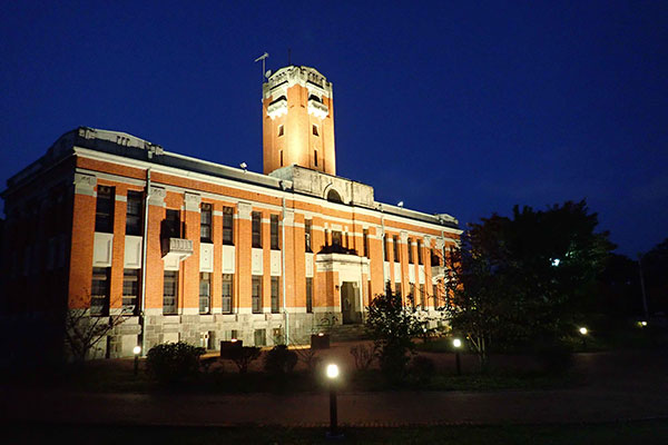 理学研究科 地球熱学研究施設では、2020年10月30日と31日に登録有形文化財建物のライトアップを実施しました。