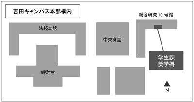 授業や実験等などで大学に来ている場合は、学生課奨学掛の窓口に提出ください。