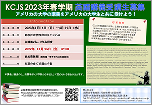 京都アメリカ大学コンソーシアム(KCJS)英語講義(2023年1月~4月)の受講を希望する本学の学生を募集します。