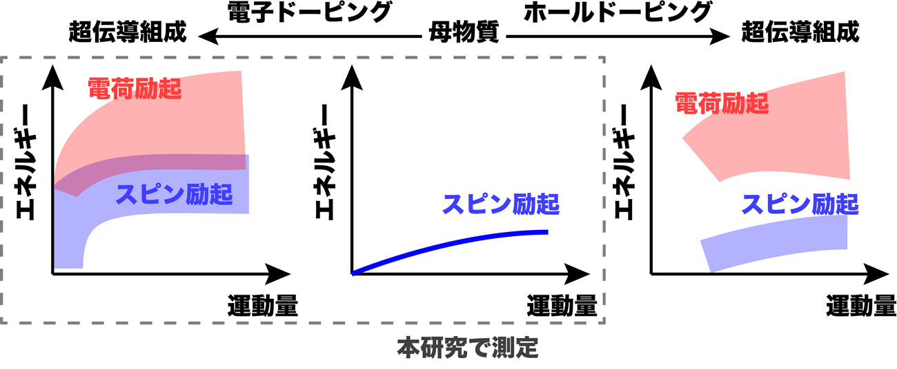 その結果スピンと電荷の励起のエネルギー・運動量空間における全体像を明らかにすることに世界で初めて成功しました。