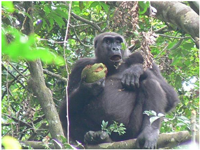 今回、10年以上にわたる本学の努力により、果実の多いガボンの低地熱帯雨林でニシローランドゴリラの観察が可能になりました。おとなのゴリラに果実の分配が観察されたので、類人猿のすべてで希少で栄養価の高い食物が分配されることが判明しました。また、交尾と関連した食物分配が起こったことも観察できました。