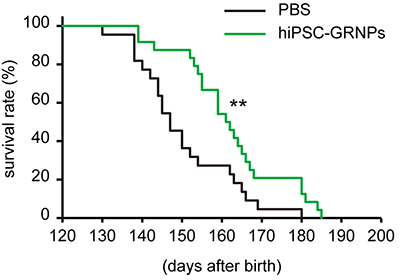 PBS:コントロール群、hiPSC-GRNPs:グリア系神経前駆細胞を移植した群