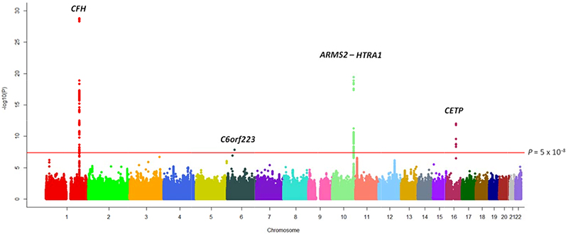 アジア人の加齢黄斑変性を予防・治療するためには、アジア人特有の原因を理解する必要があります。そこで本研究グループは、シンガポール、韓国、香港、中国本土の研究施設と共同で、2万人以上の遺伝子情報を解析することによって、加齢黄斑変性の発症に関わるアジア人特有の遺伝子変異を四つ発見しました。