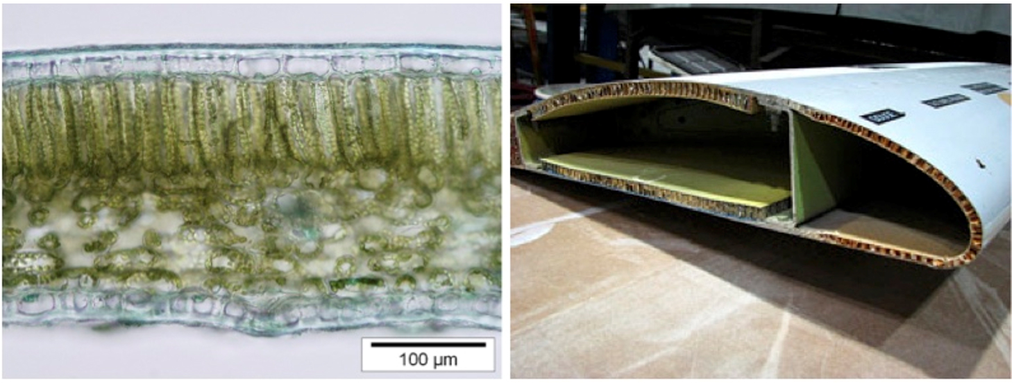 図:葉(左)と飛行機翼(右)の断面構造(右はAdem Rudin氏提供)