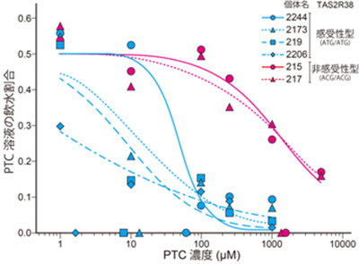 TAS2R38遺伝子型の違いとPTC苦味溶液に対する反応