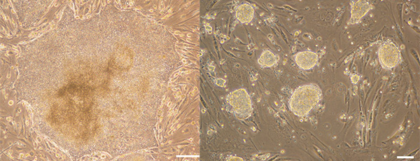 プライムドiPS細胞(左)とナイーブiPS細胞(右)