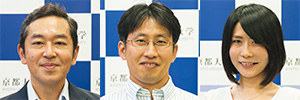 左から朝長教授、本田助教、惣福博士後期課程学生