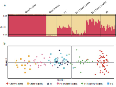 グレビーシマウマ、グラントシマウマ(サバンナシマウマの亜種)、および雑種の遺伝構造 詳しい研究内容について