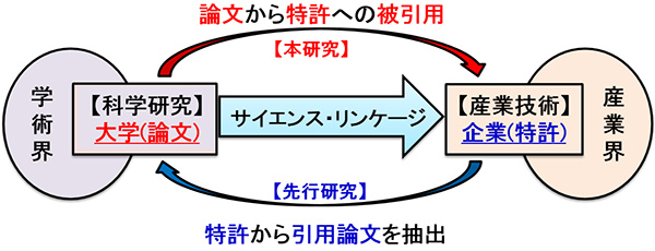 大学の優れた研究成果が学術界でどのように評価されるか、そして、特許化やライセンシングを通じて、産業界でどのように応用されるかといった学術の研究成果と産業の研究開発のつながりを「サイエンス・リンケージ」と呼びます。これまで、サイエンス・リンケージの計量経済学的解明は、未だ十分になされてきませんでした。