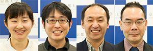 左から木邑修士課程学生、磯貝修士課程学生、野上准教授、上田准教授
