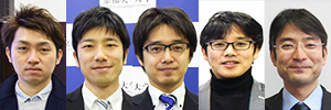 左から藤戸元博士課程学生、国奥博士課程学生、東同助教、陰山教授、阿部教授