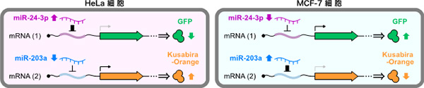 - 生きた細胞内のマイクロRNA(miRNA)を定量的に感知するメッセンジャーRNA(mRNA)を合成