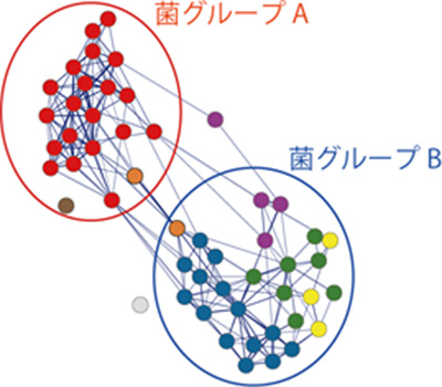 そこで、東樹助教を中心とするグループは、真菌たちが構成する「相互作用のネットワーク」に着目し、DNAバーコーディングという技術で得られた膨大なデータを解析しました。その結果、一見複雑な植物体内の微生物相であっても、ごく少数の「仲良し菌グループ」に分類されることを発見しました。さらに重要なことに、この「仲良し菌グループ」のそれぞれには、「中心核」となる種が存在することがわかりました。こうした「中心核」の種をグループの「まとめ役」として利用することで、植物と菌根菌や植物と病原菌の関係を全体的に制御できる可能性があります。この「中心核」種には、菌根菌よりも培養が容易と考えられる内生菌が含まれており、これまで注目を集めてこなかった生物を効率的に利用する道が拓けると期待されます。