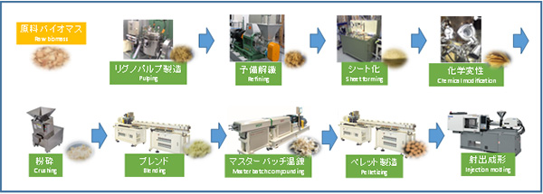 また、これらの技術をもとに、木材や竹などの原料から樹脂複合材料まで一気通貫で製造するテストプラントを京都大学宇治キャンパス内に完成させ、稼働を開始しました。