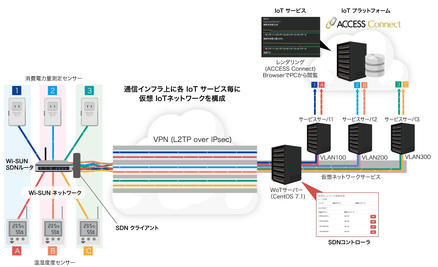 IoT向け国際無線標準規格Wi-SUNを用いた有無線統合ネットワーク仮想化システムを開発-多種多様な無線センサー・メーターをネットワーク仮想化技術により安全に個別分離ー
