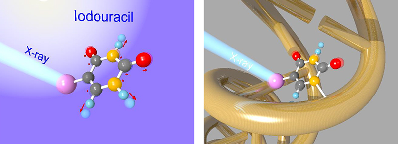 また、ヨウ化ウラシル分子は放射線増感剤として働くことが知られていますが、このような放射線増感分子が生体あるいは癌細胞に損傷を与える分子レベルの機構は解明されていません。