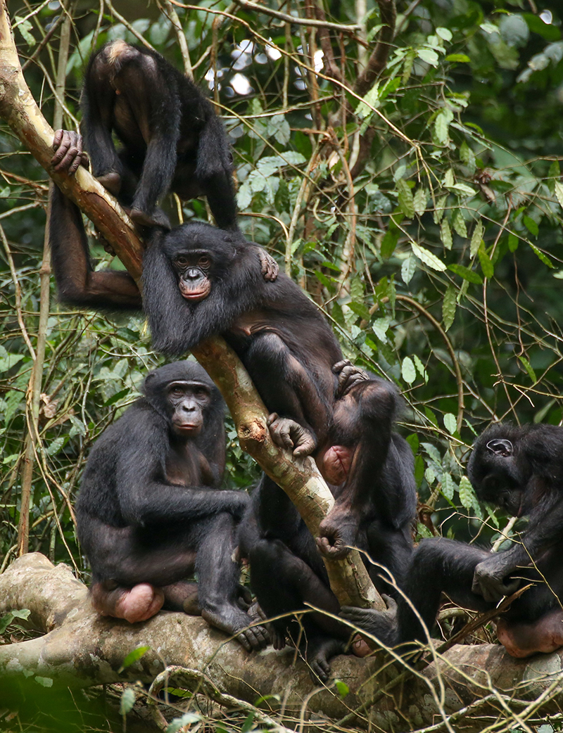 しかし、実際にメスがどのように連合を形成するのか明らかにされていませんでした。本研究ではボノボにおいて、メスの連合が親和的関係や互恵性に基づいて形成されているかどうか、コンゴ民主共和国ルオー学術保護区に生息する野生ボノボの一群を対象に観察を行いました。