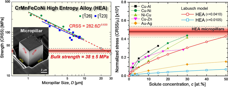 Norihiko L. Okamoto, Shu Fujimoto, Yuki Kambara, Marino Kawamura, Zhenghao M. T. Chen, Hirotaka Matsunoshita, Katsushi Tanaka, Haruyuki Inui, Easo P. George. (2016). Size effect, critical resolved shear stress, stacking fault energy, and solid solution strengthening in the CrMnFeCoNi high-entropy alloy. Scientific Reports, 6: 35863.