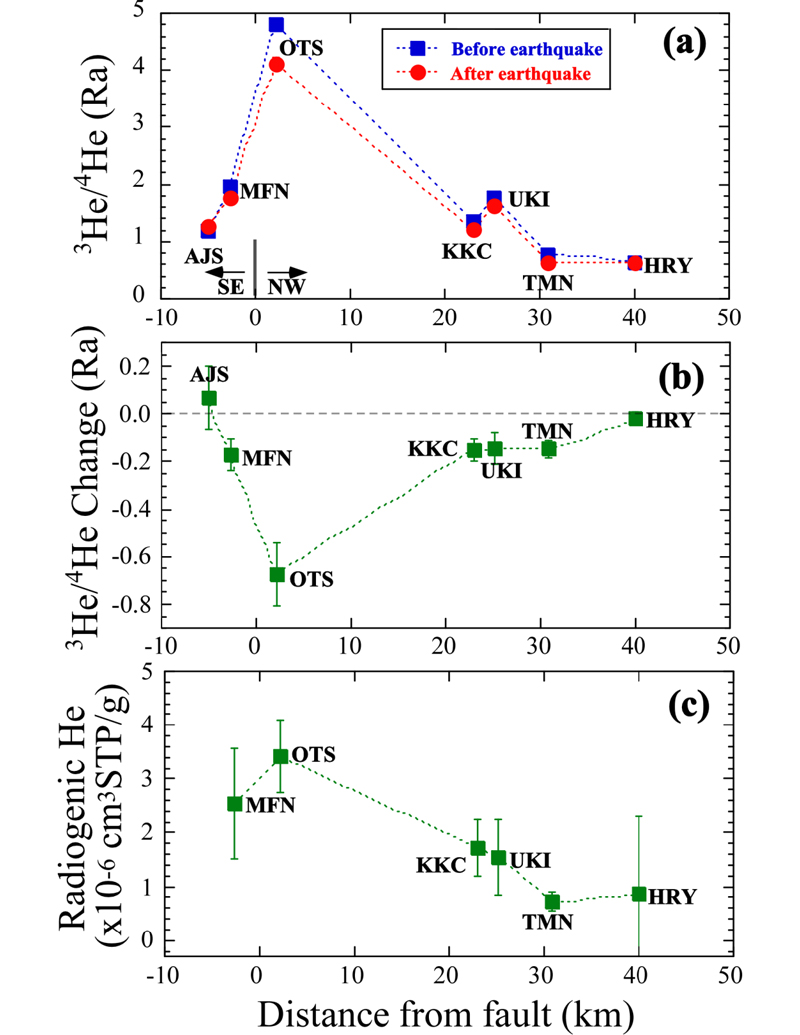 Yuji Sano, Naoto Takahata, Takanori Kagoshima, Tomo Shibata, Tetsuji Onoue & Dapeng Zhao. (2016). Groundwater helium anomaly reflects strain change during the 2016 Kumamoto earthquake in Southwest Japan. Scientific Reports, 6:37939.