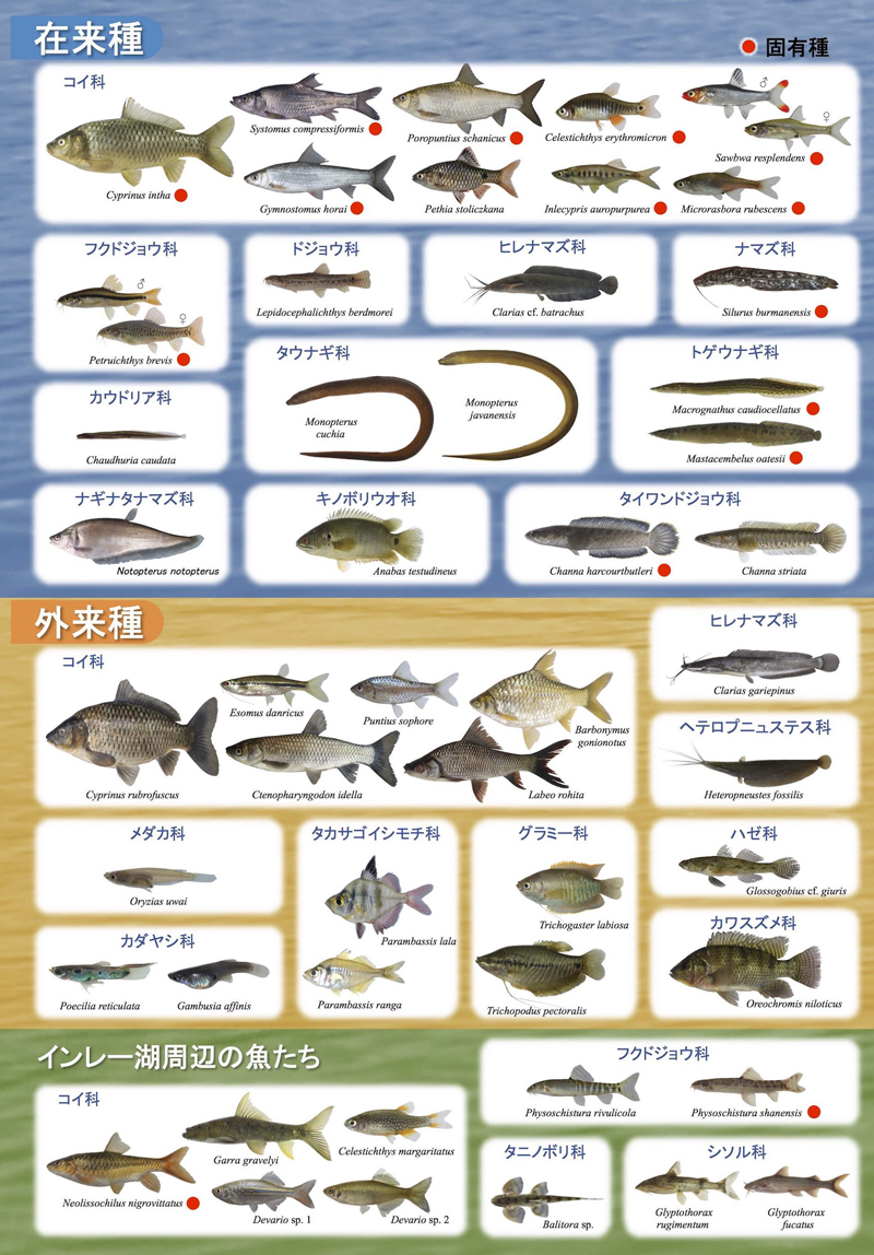 - 琵琶湖をはじめとした「古代湖」は太古から存在する湖で、世界でも20ほどしかない地学的・生物学的にも貴重な湖です。今回、ミャンマーの古代湖インレー湖で魚類の総合調査を行いその魚類相を明らかにしました。インレー湖の魚類相については1918年に報告されて以来情報がなく、およそ100年ぶりに再び明らかとなりました。