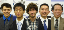 左から、オーダ博士課程学生、池田修士課程学生、ハウスマン修士課程学生、米澤助教、前野教授