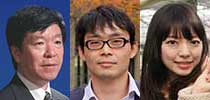 左から、西田教授、宇野特定研究員、岸本博士課程学生