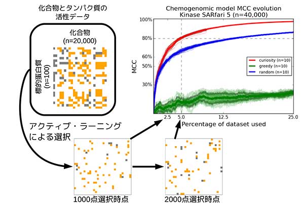 J. B. Brown 医学研究科講師らの研究チームは、複雑なAIやビッグデータを用いずに、高い精度で薬物の候補物質をスクリーニングする手法を開発しました。化合物の構造や過去の実験データから反応の予測に重要な組み合わせのみを選び、そのデータを用いて予測するもので、全実験データの10%から20%程度を使い、データベースに含まれる全ての化合物が、治療の標的となるタンパク質と反応するかどうかを高精度に予測することに成功しました。