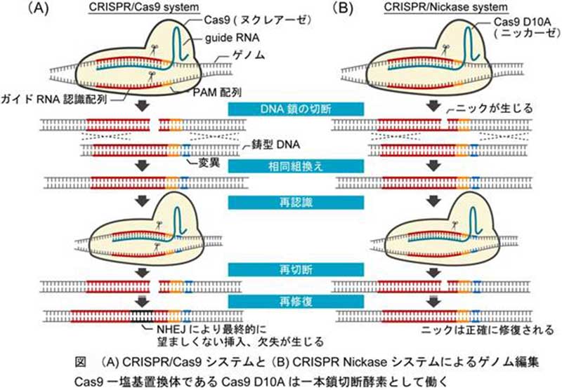 植田充美 農学研究科教授、黒田浩一 同准教授、里村淳 同博士課程学生らの研究グループは、ゲノムワイドで高効率な編集技術を構築するために、DNA一本鎖切断酵素であるCas9 Nickaseを用いたCRISPR/Nickaseシステムを確立しました。