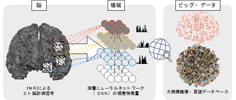 ヒトの脳と深層ニューラルネットワークを対応づけることで、脳からビッグ・データの利用を可能とする。