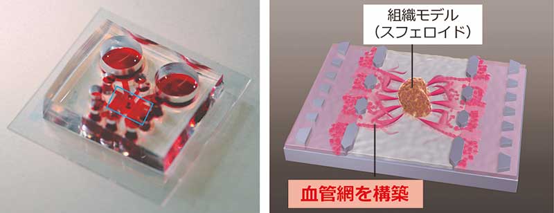 私たちの体は、60兆個もの細胞が協働し、機能的な「かたち」を作ることで維持されています。細胞による組織の「かたち作り」を理解するためには、実験動物から摘出した組織や、ES細胞、iPS細胞等から人工的に作った組織を、体の外で長期間観察する必要があります。このためには、外部から血管を通じて栄養、酸素を人工組織に供給することが必要です。