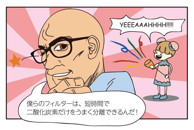 「二酸化炭素をいかに経済的に効率の良い方法で分離・回収するか」という大き な課題は、たった一本の論文では解決することはできず、技術開発を継続的に行 う必要があります。その中で、乗り越えるべき課題等もさらに見つかると思いま す。大変なチャレンジですが、とても重要な問題で、今すぐにでも着手していか なければならないと感じています。