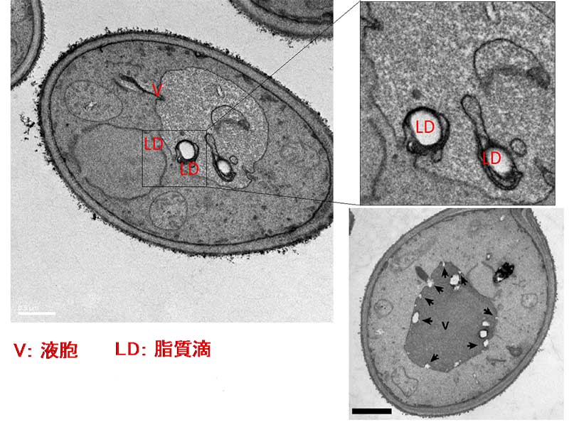 図:ミクロオートファジーにより液胞内に取り込まれる脂肪滴