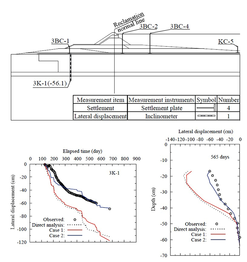 今回の手法を用いた予測結果と実際の観測値、設計時のシミュレーション結果を比較してみると、今回の予測手法はこれまでの手法に比べ実際の観測値とかなり近い予測ができていることを確認しました。このように、データ同化手法を地盤の変形計算にうまく組み込むことで、土の基本的な変形特性を確認しながら地盤強度を精度よく予測することが可能となります。