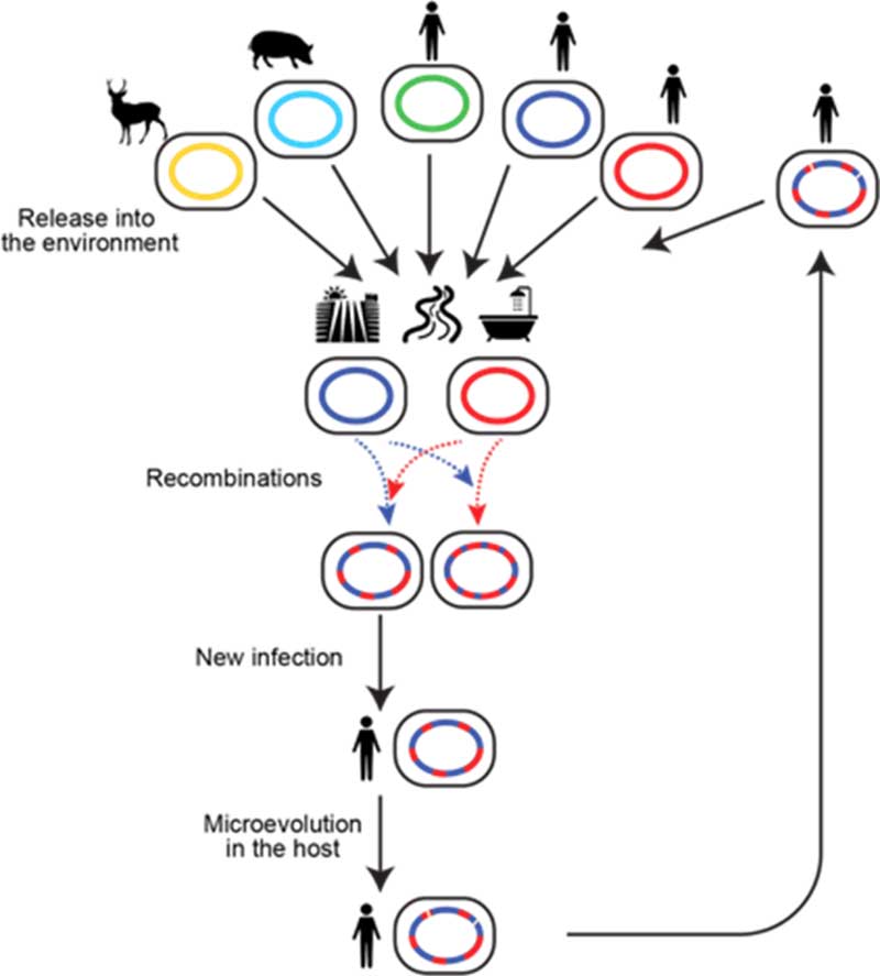 丸山史人 医学研究科准教授、矢野大和 東北大学講師、岩本朋忠 神戸市環境保健研究所部長らの研究グループは、肺疾患を引き起こす細菌の系統である Mycobacterium avium complex(以下、MAC)の中の1グループ、 M. avium subsp. hominissuis (以下、MAH)のゲノムを初めて集団規模で比較解析しました。その結果、MAHは遺伝子を他の種から頻繁に獲得していること、さらにMAHは進化の過程で異系統間での染色体の組み換え(有性生殖)を行っていることが分かりました。これらは結核菌には見られない特徴です。