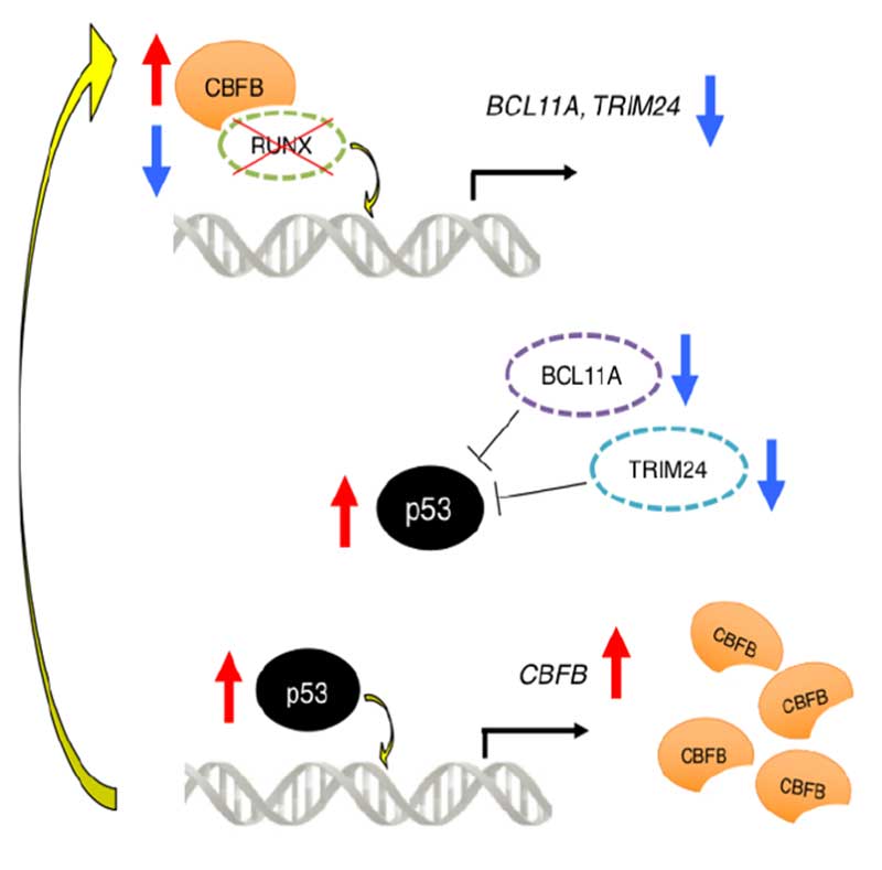 Autonomous feedback loop of RUNX1-p53-CBFB in acute myeloid leukemia cells. Scientific Reports, 7, 16604.