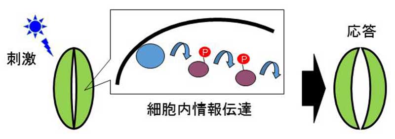 タンパク質のリン酸化は、細胞内の情報伝達に非常に重要な役割を果たしています。本研究では、青色光刺激により植物の細胞内で起こるタンパク質リン酸化の変化を大規模に調べました。