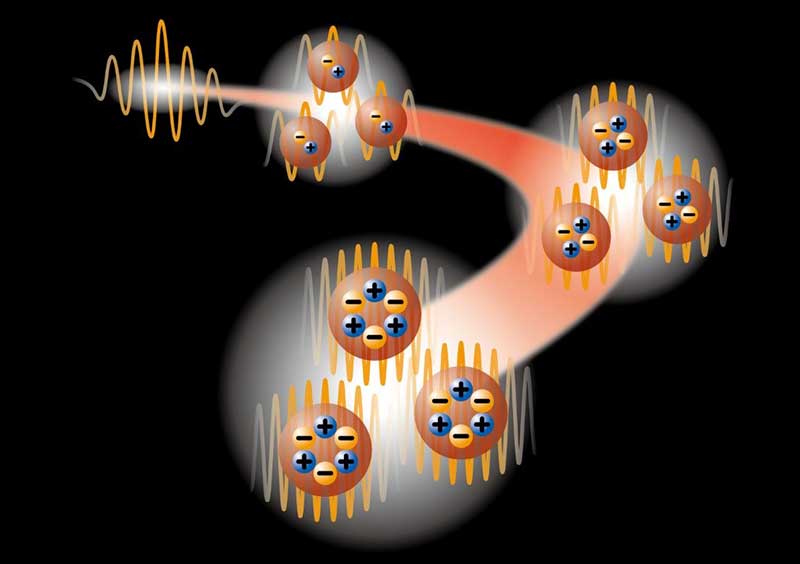 田原弘量 化学研究所助教、金光義彦 同教授らの研究グループは、直径5~6ナノメートルの半導体ナノ粒子にレーザーパルス光を照射することで、光を吸収したナノ粒子内部の多数の電子が、量子力学的な相互作用により特殊な状態を作り出していることを初めて発見しました。