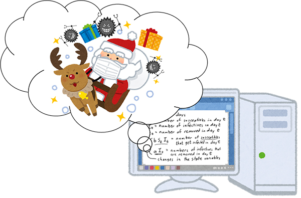 古瀬祐気 ウイルス・再生医科学研究所 特定助教は、サンタクロースがクリスマスイブに感染症にかかっていた場合、どれだけの人が病気をうつされるのか差分方程式を用いた数理モデルによって解析しました。