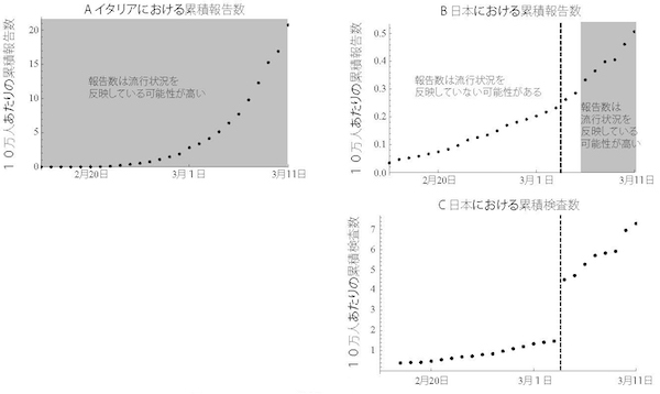 2019年12月に中国で確認された新型コロナウイルス感染症はパンデミックとなり世界的な流行となっています。流行状況の把握のために、確定患者、つまり、PCR検査で陽性となった方の検査陽性報告数(報告数)の時系列が多くの国で公開されており、このデータから流行状況を解析する研究が多く見られます。