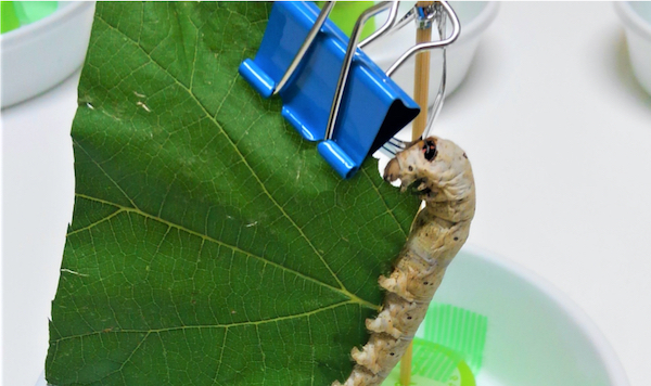 図:クワの葉を食べるカイコの様子(写真提供:山本哲史)