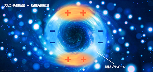田中耕一郎 理学研究科 教授(高等研究院物質-細胞統合システム拠点(iCeMS=アイセムス)連携主任研究者)、有川敬 同助教、平岡友基 同博士課程学生、森本祥平 同修士課程学生(研究当時)らの研究グループは、François Blanchard カナダ・Éc ole de technologie supérieure教授、笹木敬司 北海道大学 教授らと共同で、光の軌道角運動量を擬似プラズモン(電子の集団運動)に転写することに成功しました。