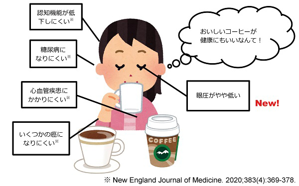 ただし、コーヒーを飲むことによって眼圧が下がるのかはわかっていませんので、緑内障の治療や予防の目的でコーヒーを摂取することを推奨するものではありません。