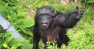 チンパンジーのボディランゲージ、距離に応じて使い分け