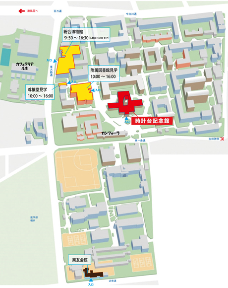 ※見学ご希望の方は、附属図書館へ直接お越しください。受付において、見学の順路図をお渡しします。