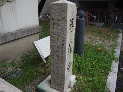 正面に向かって右側にある「尊攘堂」の石碑は、1940年10月に皇紀2600年を記念して建てられ、1945年8月21日に撤去されました。その後、所在不明となっていましたが、2013年に発見されました。石碑の側面に「皇紀二千六百年記念」と刻まれ、また別の側面にはこの建物の由来が刻まれています。