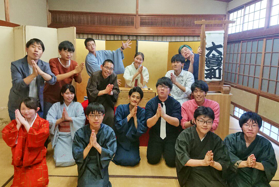 京都大学を中心に様々な大学や国から集まった約40人の男女で活動しています。古典落語を中心に、新作落語・漫才・コント・大喜利など幅広いジャンルで学内外の皆さんに笑いをお届けしています。