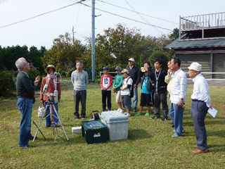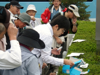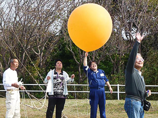 ![]() 風船を見上げる参加者(高層観測) | ![]() 地上気象観測の説明 |