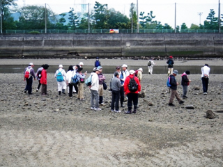 ![]() パックテストの様子 | ![]() 干潮時の河口 |
